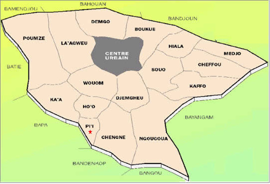 Le village BAHAM; aujourd'hui chef lieu du département des hauts plateaux; est un reproupement de 16 villages : Boukue, Cheffou, Chengne, Demgo, Djemgheu, Hiala, Ho'o, Ka'a, Kaffo, La'agweu, Medjo Ngouogoua, Pi'i, Poumze, Souo et Wouom.